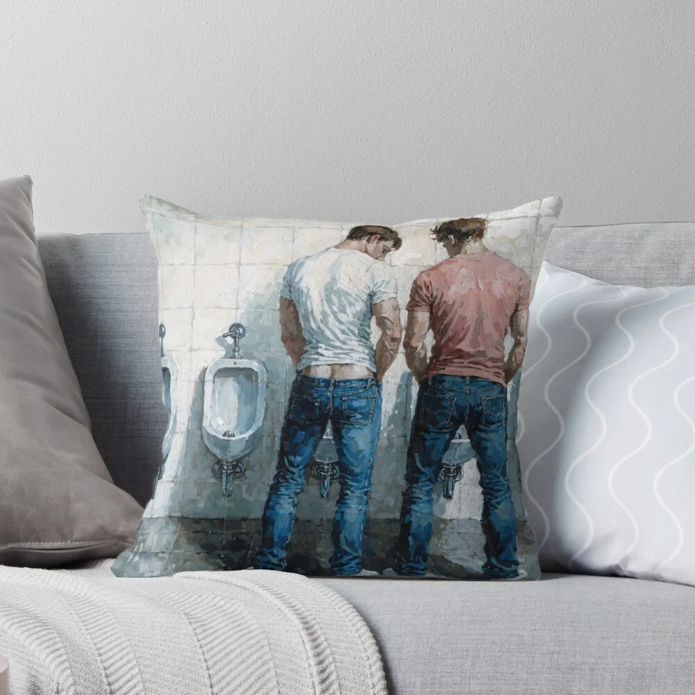 This striking graphic delves into the raw dynamics of male desire and the hidden connections forged within the seemingly mundane sanctuary of a public restroom. It's a bold exploration of curiosity and attraction, capturing those fleeting, charged moments that speak volumes without a single word.